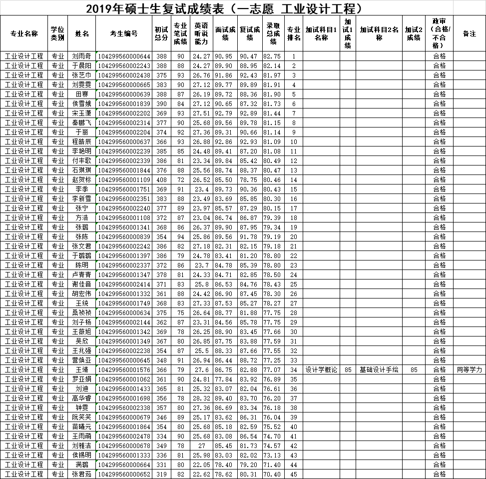 williamhill官网网站2019年硕士研究生复试成绩表- 一志愿 工业设计工程