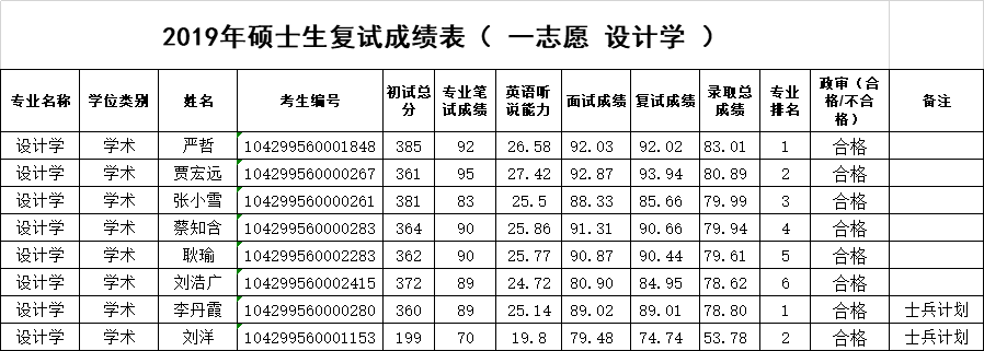 下一条:williamhill官网网站2019年硕士研究生复试成绩表- 一志愿 工业设计工程