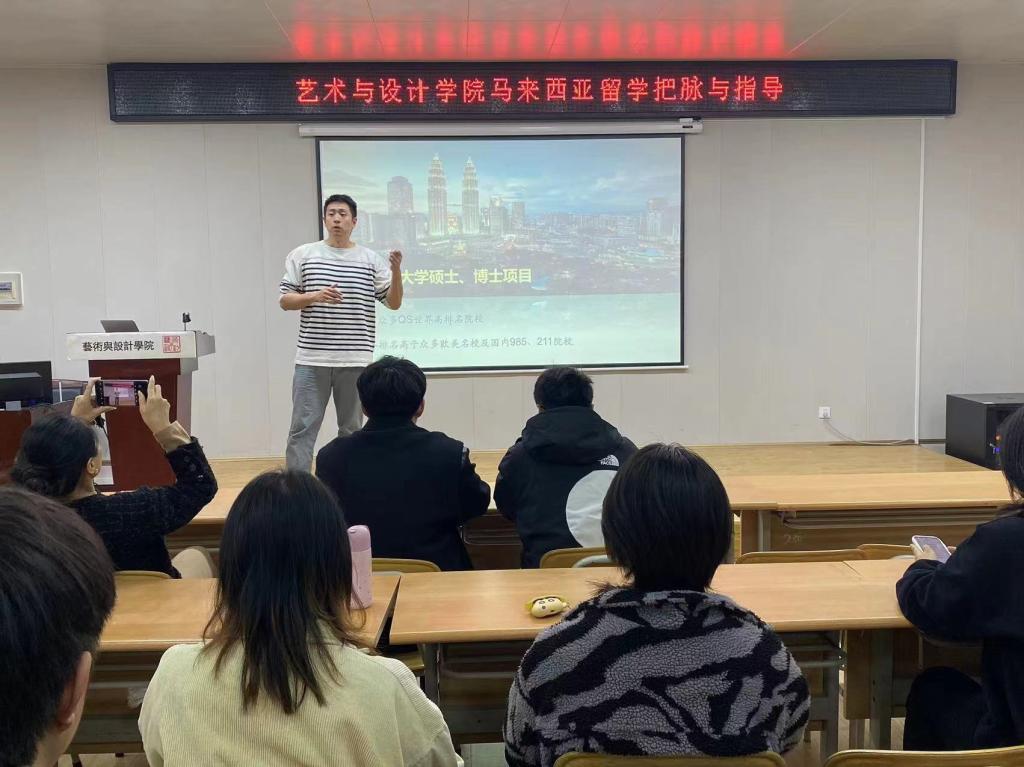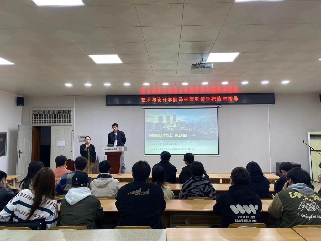 随后,马来西亚留学负责人龙洋老师接过了昌教授的话题,为大家详细介绍了马来西亚的交换生和留学项目。龙老师首先提到了交换生项目,指出同学们有机会前往马来西亚多媒体大学进行为期一学期的交换学习。在交换期间,同学们将深入体验马来西亚的教育体系和文化氛围,与当地员工共同学习、交流,拓展国际视野。
