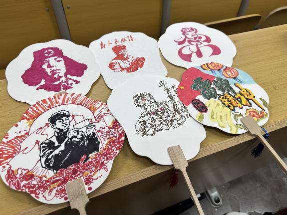 团扇绘制现场