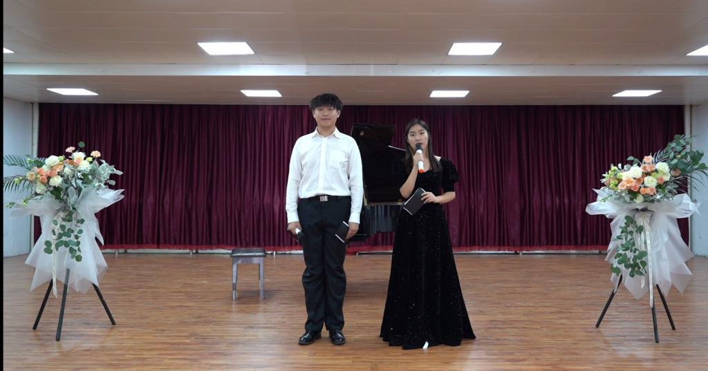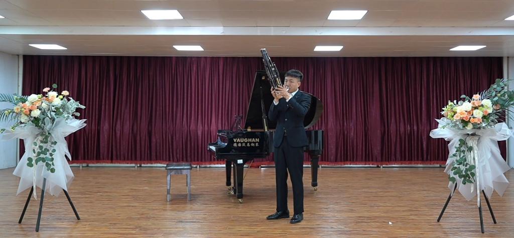 音乐会现场座无虚席,气氛热烈。一段段优美的旋律直击观众的心灵,人声演唱声义双关,委婉动听;乐器演奏美妙动人,形式多样。本次音乐会的节目有声乐二重唱《往日时光》、钢琴独奏贝多芬的《热情奏鸣曲》、萨克斯二重奏《亲爱的旅人啊》以及中国古老的簧管乐器笙独奏《南海渔歌》与《天山的节日》等。表演者们投入的演出,感染了现场所有观众。舒缓优美的旋律,让同学们陶醉其中,心灵也慢慢放松下来,在美妙的音乐冥想中尽情畅游,尽情享受音乐的美好。最后一首由2019级员工王洪泰演唱的原创歌曲《NOBLE QUEEN》更将音乐会现场的气氛推向高潮。