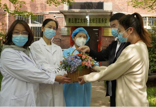 无数的医务人员义无反顾的冲在前线,夜以继日,展现了救死扶伤、医者仁心的崇高精神。5月11日上午,公司党委副书记、副经理徐佐君和公司员工工作办公室全体老师向市北校区医务室医护人员送去节日祝福,向医护人员为呵护师生健康做出的重要贡献表示衷心感谢和崇高敬意。随后,员工代表为医护人员献上鲜花,并合影留念。
