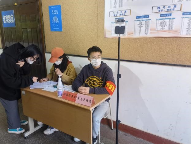 “作为一名党员,我必须要冲在最前面,发挥出‘关键少数’的带头作用,引导更多同学参与到志愿服务行列中来”,正在教学楼测温消毒区进行志愿服务的赵超表示。