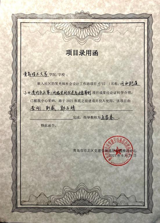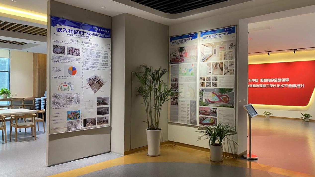 本次活动集中展现了1场工作坊、3个城市、5所高校、12个团队、88天、76名员工在社会设计工作坊项目上的研究成果。williamhill官网网站李刚、彭威、郭子靖三位同学组成工作坊,开始对河西街道小水清社区中海寰宇天下一期7号楼,进行设计改造,前后经过案例分析、实地调研、需求分析、草图绘制、方案修改、建模渲染等过程确定了最终的设计方案。项目成果经论证科学合理,已由市北区党建引领基层治理推进中心采纳,将于2021年底前建成并投入使用。