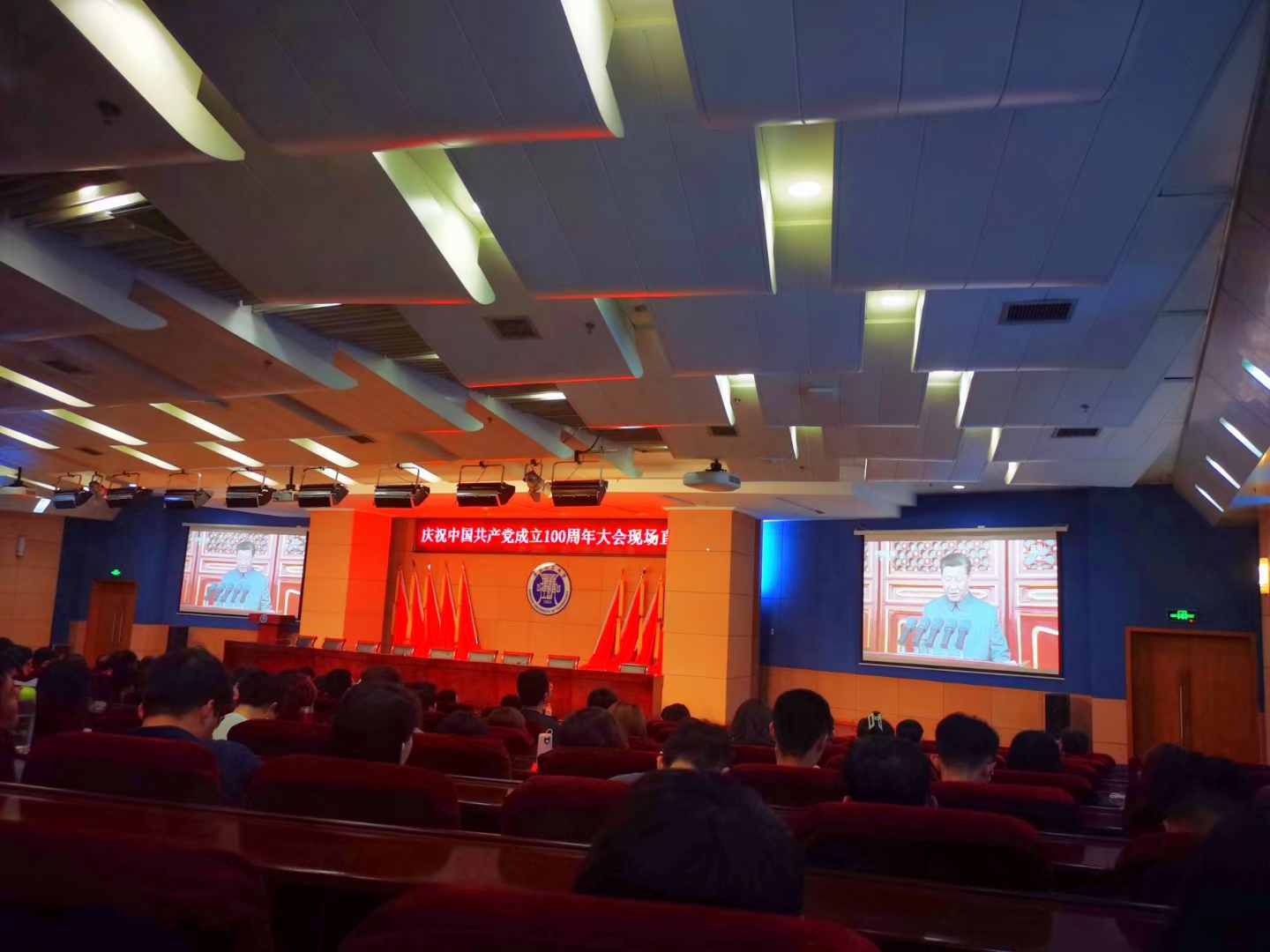 7月1日上午,庆祝中国共产党成立100周年大会在北京天安门广场隆重举行,中共中央总书记、国家主席、中央军委主席习近平发表重要讲话。williamhill官网网站组织全全体员工共计800余人分别在一教300阶、400阶、500阶、市北校区报告厅收看大会直播。