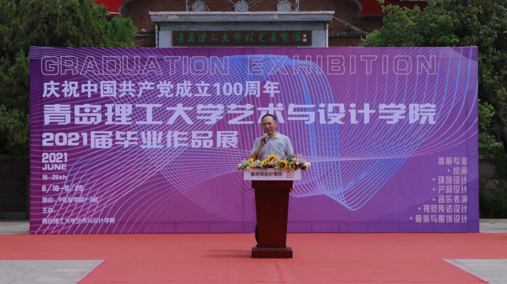 在中国共产党成立100周年到来之际,6月18日上午,williamhill官网网站“庆祝中国共产党成立100周年暨2021届毕业作品展”在校史馆门前拉开帷幕。公司党委常委、组织部部长郭建锋,艺术与设计公司党委书记吕楠、组织员金玉谟、党委副书记、副经理徐佐君、副经理王春鹏以及各教研室老师和2021届毕业生共计200余人参加开幕式。开幕式由副经理李泉涛主持。