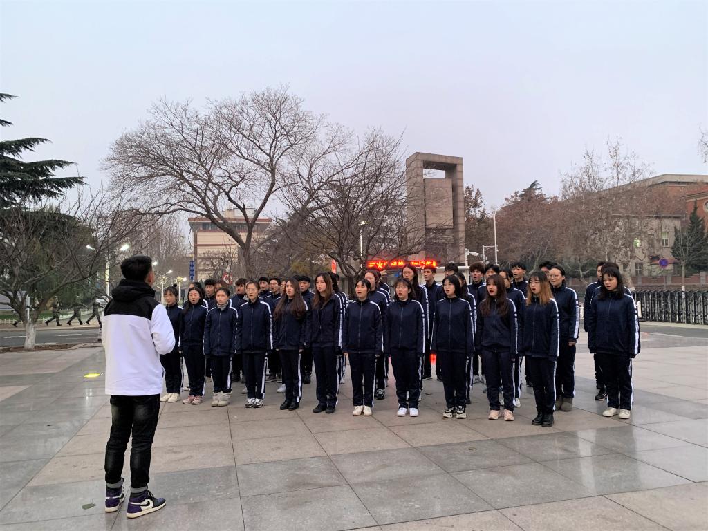 国旗护卫队迈着铿锵的步伐整齐的进入场地,与清晨的第一缕阳光共同映入师生的视线,升旗仪式也随之正式开始。伴随国旗手的振臂,鲜艳的五星红旗在清晨微凉的寒风中缓缓展开,在音乐的伴奏声中升空,全体师生庄严肃立,向国旗行注目礼。视觉191罗惟一作为员工代表以“勿忘一二九,共图中华强”为主题发表演讲。她表示当代老员工要永远铭记那段青年员工因爱国而走上街头斗争的历史,更需要继承和发扬“一二•九”爱国运动的精神,我们在前辈们未走完的路上继续前进,以天下为己任,为祖国的繁荣昌盛贡献自己的智慧与力量。”