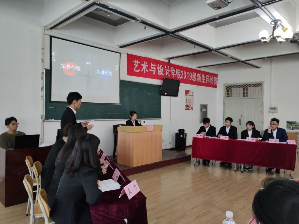 首先,主持人介绍后,比赛拉开序幕。第一场比赛的烽火由环设192班与环设193班点燃。继正方慷慨激昂、反方充满理性色彩的自我介绍后,比赛进入开篇立论环节。选手们根据各自立论围绕着“知易行难”和“知难行易”等辩题激烈讨论,正方辩手们精辟的措辞,犀利的言辞,展现出咄咄逼人的气势。反方辩手也毫不示弱,充分发挥,步步紧逼,使现场气氛快速升温。随后比赛进入总结陈词环节。正反双方辩手清晰的思路和巧妙的陈词给观众留下了深刻印象。接着,评委对本轮辩论赛做了精彩的点评,他指出了双方的优点和不足,点出辩论赛要注意的问题和表达方法,并表示期待大家的进步。最终,经过统计,第一轮辩论赛的胜利一方为正方环设192班。随后四轮比赛,各方辩手围绕着“机遇与奋斗重要性的高低”、“老员工勤工俭学的利与弊”等一系列辩题活跃发言,激烈交锋。整场比赛高潮迭起,精彩不断,观众也积极参与,和选手们互动,最终,有五个班级获胜成功进入复赛,同时在活跃的现场气氛中本次辩论赛圆满完成。
