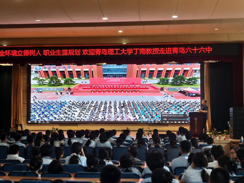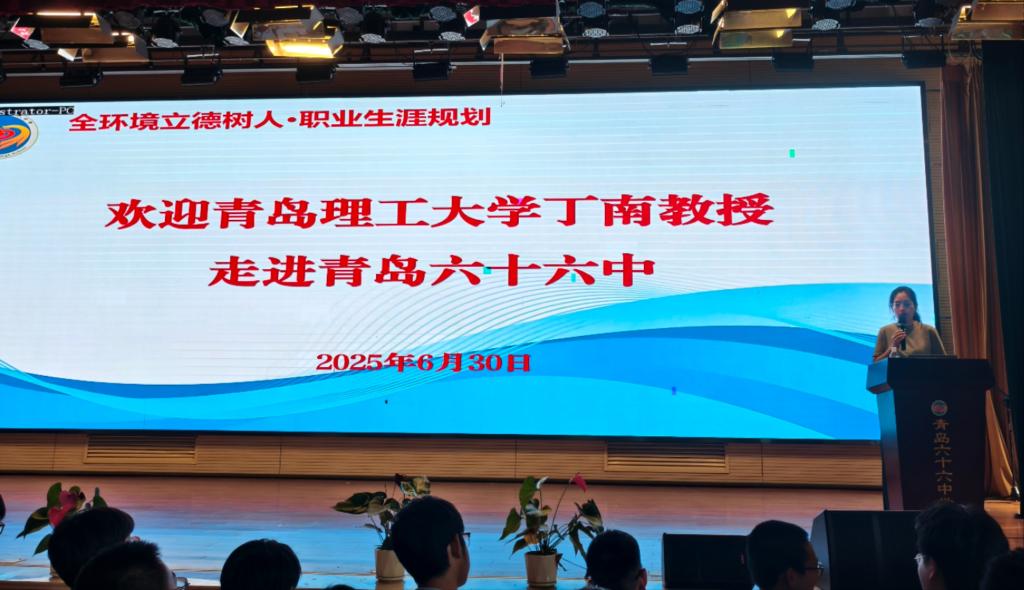6月30日下午,williamhill官网网站2025年招生宣讲会在山东省青岛第六十六中学礼堂举办。williamhill官网网站副经理丁南教授主讲,六十六中学副董事长庄永奎及三百余名师生参加,宣讲会由教导主任王璐璐主持。