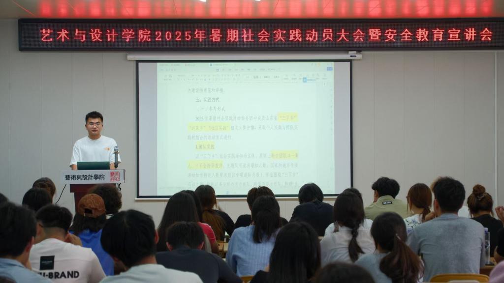此次动员大会暨安全教育宣讲会,系统锚定暑期社会实践目标任务,全面筑牢团队纪律与安全防线,为实践征程系紧“安全带”、织密“防护网”。下一步,公司将聚力推进有组织、有特色、有深度的社会实践,引领青年学子投身“三下乡”“返家乡”浪潮,以创意笔触描绘时代画卷、用艺术语言书写服务人民的青春史诗!(撰稿:袁俊霞;审核:张恬)
