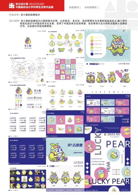 近日,全国普通高校学科竞赛排行榜内竞赛“米兰设计周——中国高校设计学科师生优秀作品展”拉下帷幕,在“设计赋能‘土特产’,助力乡村振兴”公益赛道国赛评审中,公司设计学研究生孙涤非的作品《青小梨的品牌设计》(指导教师为朱宏轩教授),经赛事组委会、承办单位及命题单位多轮评审后,喜获国家级一等奖的优异成绩。