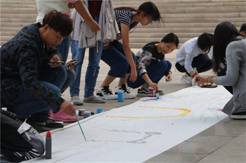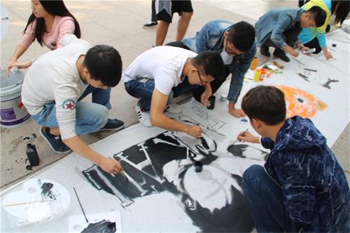 本次活动不设限制、自由发挥。同学们怀着自己对书画的热情与喜爱,利用手中的颜料、画笔等工具,在百米长卷上尽情发挥想象,画出自己满意的作品。